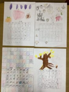 HOME > スタッフブログ > 10月のカレンダー🍁 2025/10/06 10月になりカレンダーを作りました。 10月のイメージを話し合い、イメージを膨らませています。 1日は何曜日から始まり終わりは何日なのか確認をして数字を書いています。 祝日を赤にしたり工夫しながら丁寧に書いていました😊 イラストはハロウィンや紅葉、秋の味覚、芸術の秋とそれぞれのイメージを表現しています。 素敵なカレンダーができました✨ Twitter Share Pocket LINE コピーする