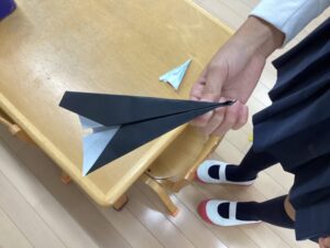 HOME > スタッフブログ > おまけの時間 紙ひこうき 2025/11/10 最近では、また折り紙ブームがやってきました! その中でも紙ひこうきをよく作っています😊 紙ひこうきの折り方を覚えているお友だちもいます。 作り方を教えてあげる姿も見られました。教えてもらいながら折ることができ嬉しそうです✨ 出来上がった紙ひこうきを飛ばし距離を競って楽しんでいます。 Twitter Share Pocket LINE コピーする