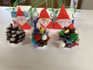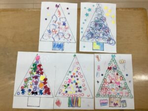 HOME > スタッフブログ > クリスマス🎄 2025/12/24 明日はクリスマスですね! 子どもたちも楽しみなようで、サンタさんの話で盛り上がっています。 てらすでもクリスマスの本を読んだり飾りを飾ったりと季節を感じられるようにしています。 飾りに気が付き教えてくれたり、作ってみたりと楽しんでいます😊 『松ぼっくりツリー』 『スタンプツリー』 Twitter Share Pocket LINE コピーする