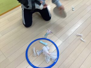 HOME > スタッフブログ > パタパタちょうちょゲーム🦋 2026/02/18 パタパタちょうちょゲームをしました。 うちわであおいで輪っかの中にちょうちょをたくさん入れた人の勝ちというゲームです。 今回は作るところから取り組んでいます。 うちわに絵を描き、オリジナルのうちわを作りました。 ちょうちょは折り紙や緩衝材などをじゃばら折りにして作りました! 制限タイムを決め、ゲームスタートです。 仰ぐ力加減や仰ぐ位置など考えながら入れていました。 Twitter Share Pocket LINE コピーする